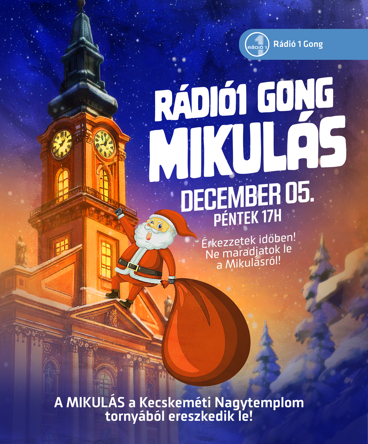 Hírek / 2025. november. 10. hétfő Rádió 1 Gong Mikulás A Mikulás a Kecskeméti Nagytemplom tornyából ereszkedik le december 5-én pénteken 17 órakor. Érkezzetek időben!