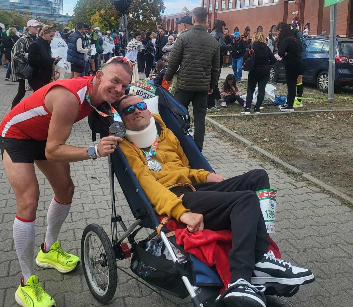 A kiváló sportolóval az volt a témánk, hogy végigtolta Dr. Nagy Andrást, kerekesszékes barátját a Budapest Maratonon.